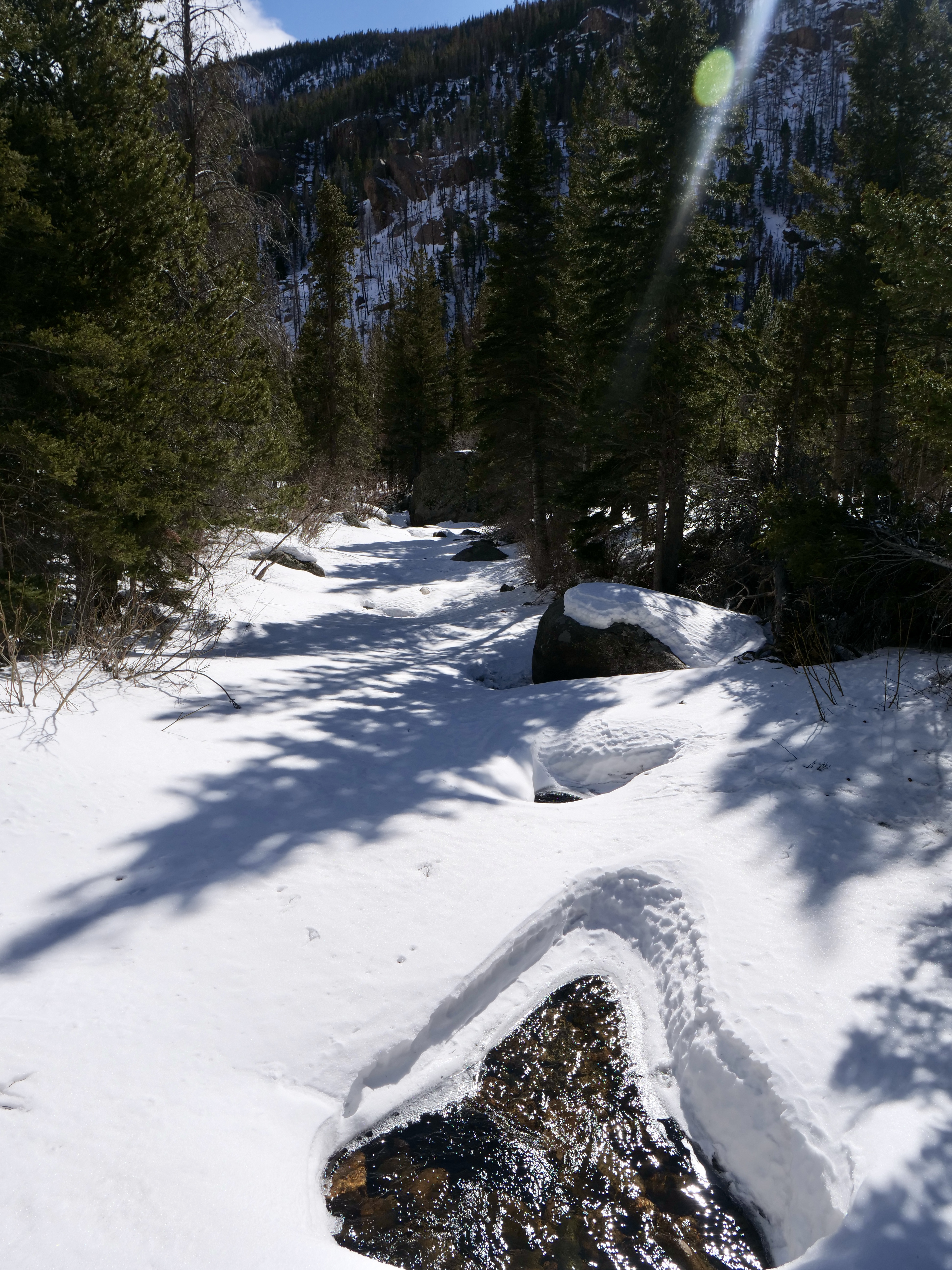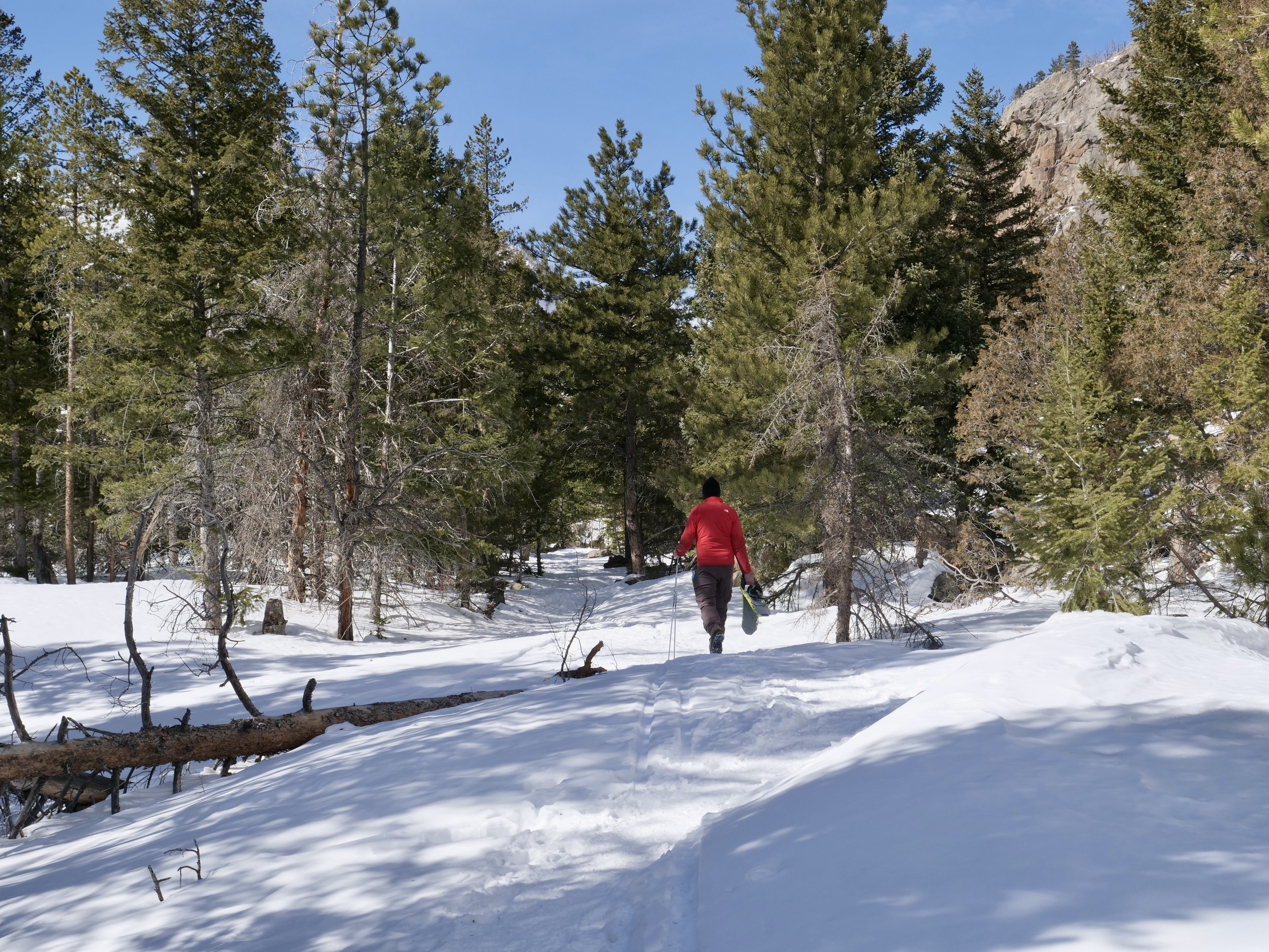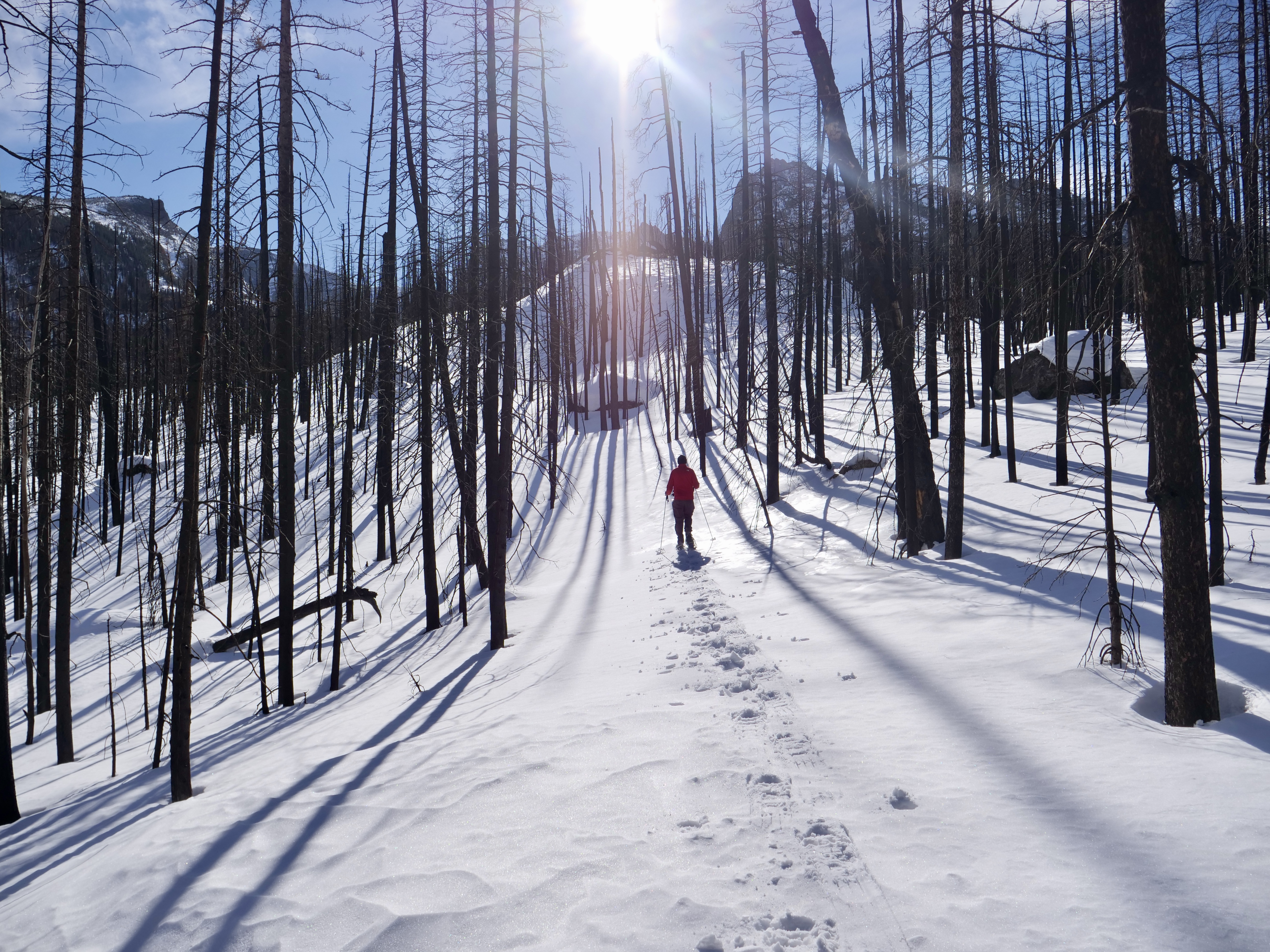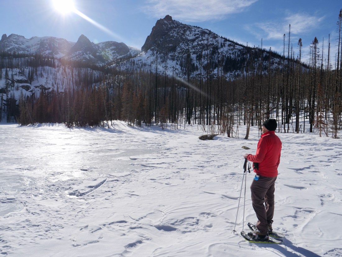 It was a gentle climb up to Glen Haven but right after there was a brutal climb and I had to push the bike for a little bit. But once at the top it was a beautiful downhill to Estes Park. I had breakfast with Dave-The-Rave and we went for a great snowshoe hike where we broke trail up to Fern Lake in RMNP.