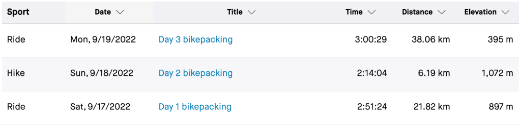 Below is the 4 day overview screenshot from Strava (Day 2 climb was 6h 54min, not 3h 15min. My watch wouldn’t track the last two days so I plotted the route manually in ridewithgps, I guess it’s getting old).