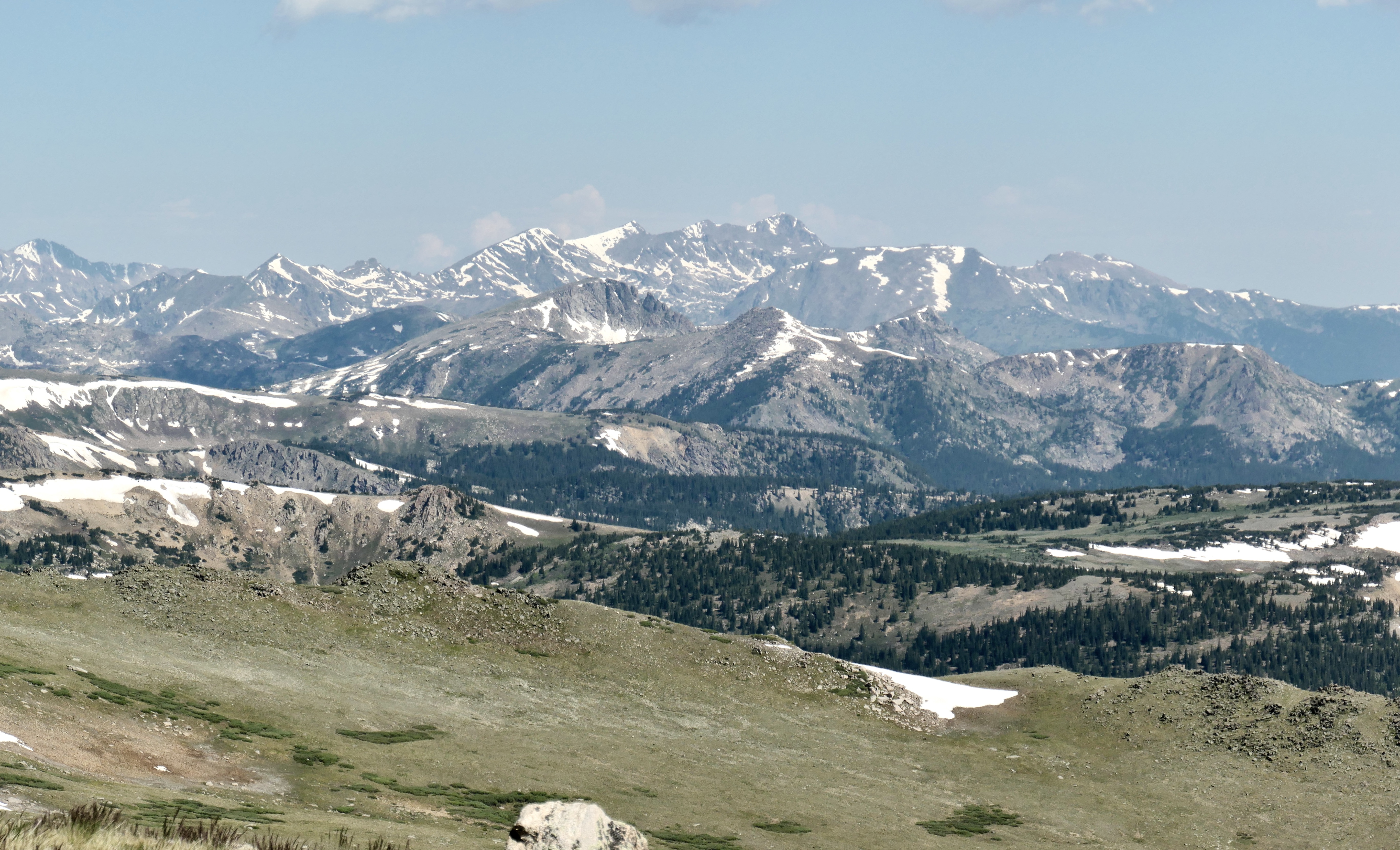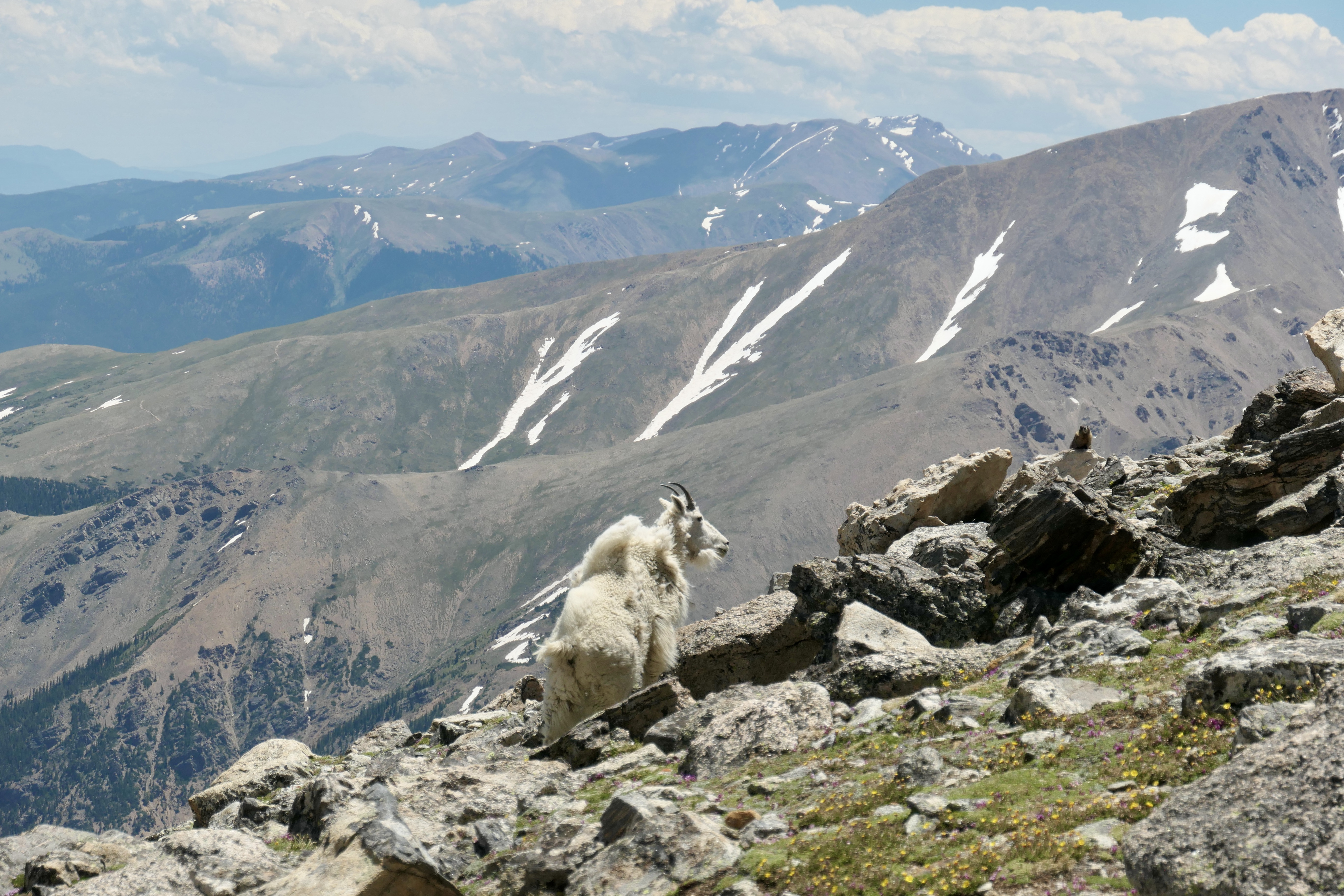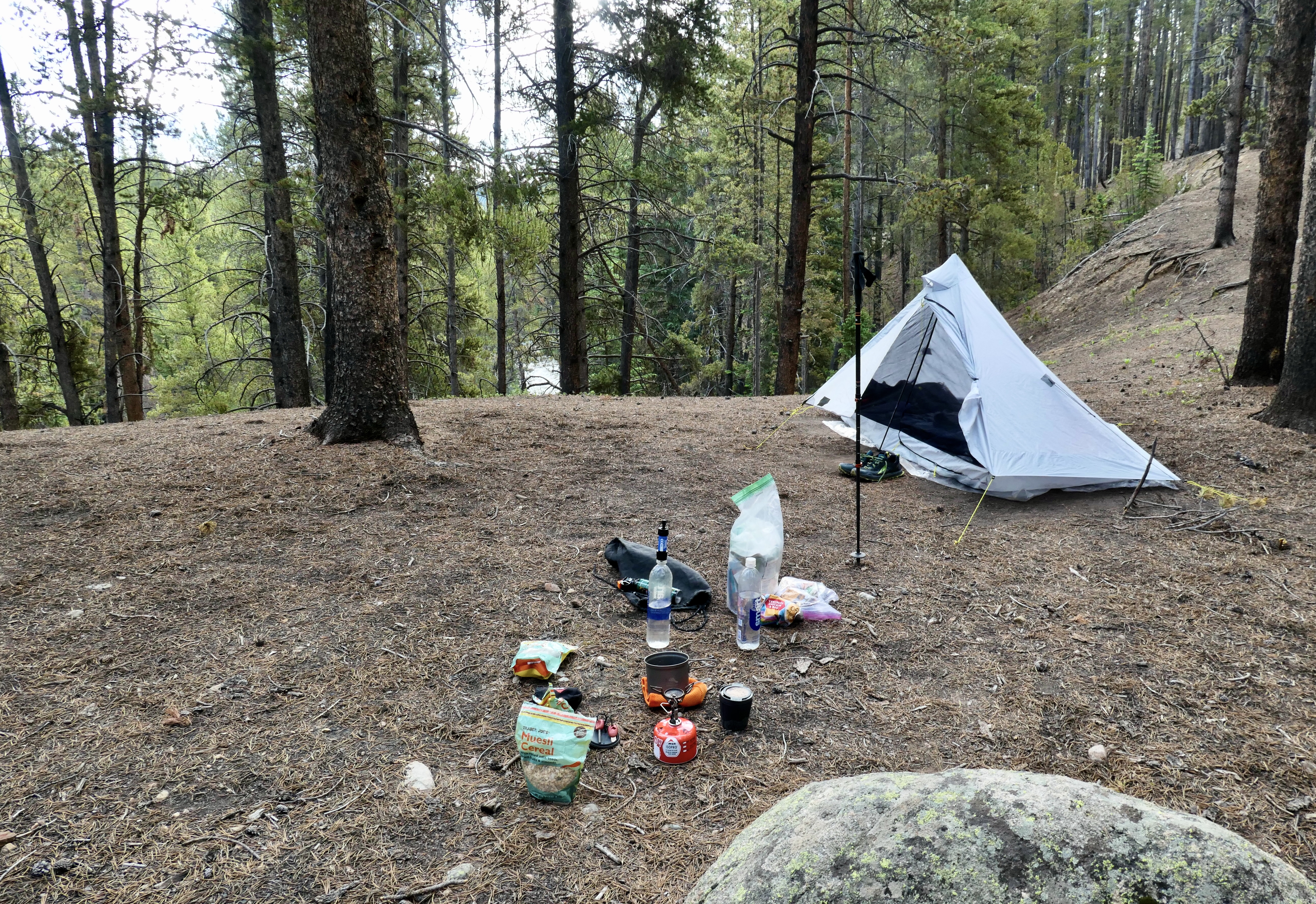 I got up already at 6:15 to make some coffee. I grinded fresh beans before I left and that paired with the MSR coffee filter is a winner every time. Best way to get good coffee on trail unless you want to bring the grinder. It was only my second night in my new tent (Six Moon Designs Lunar Solo) and generally i was very happy with it the whole trip. It stayed dry the whole trip so still have to put it to the test in rainy weather. It’s a one man tent but i can still have all of my gear inside which i like. The first part of the trail is on the Colorado Trail so I already met a bunch of people that were going all the way to Durango. The whole trail usually is 4-6 weeks. After around 6k on the CT the trail breaks off and goes up the mountain. Theres a nice big stream just before it breaks off so I took a little break and filled up my bottles. I climbed it on a Saturday so I met quit a few people on the way. To my surprise I didn’t need to cross any snow and it was not a very technical climb. I could basically walk the whole way up (it’s classified as class 2). The views where amazing as always when you climb a mountain and I met a family of mountain goats all the way on the top. It was a very cool experience since it was my first time seeing them. I got down after 24k, 1400m elevation, and almost 7h of walking, and had a really good lunch in camp. The rest of the day I was just eating and chilling in camp, another great day.