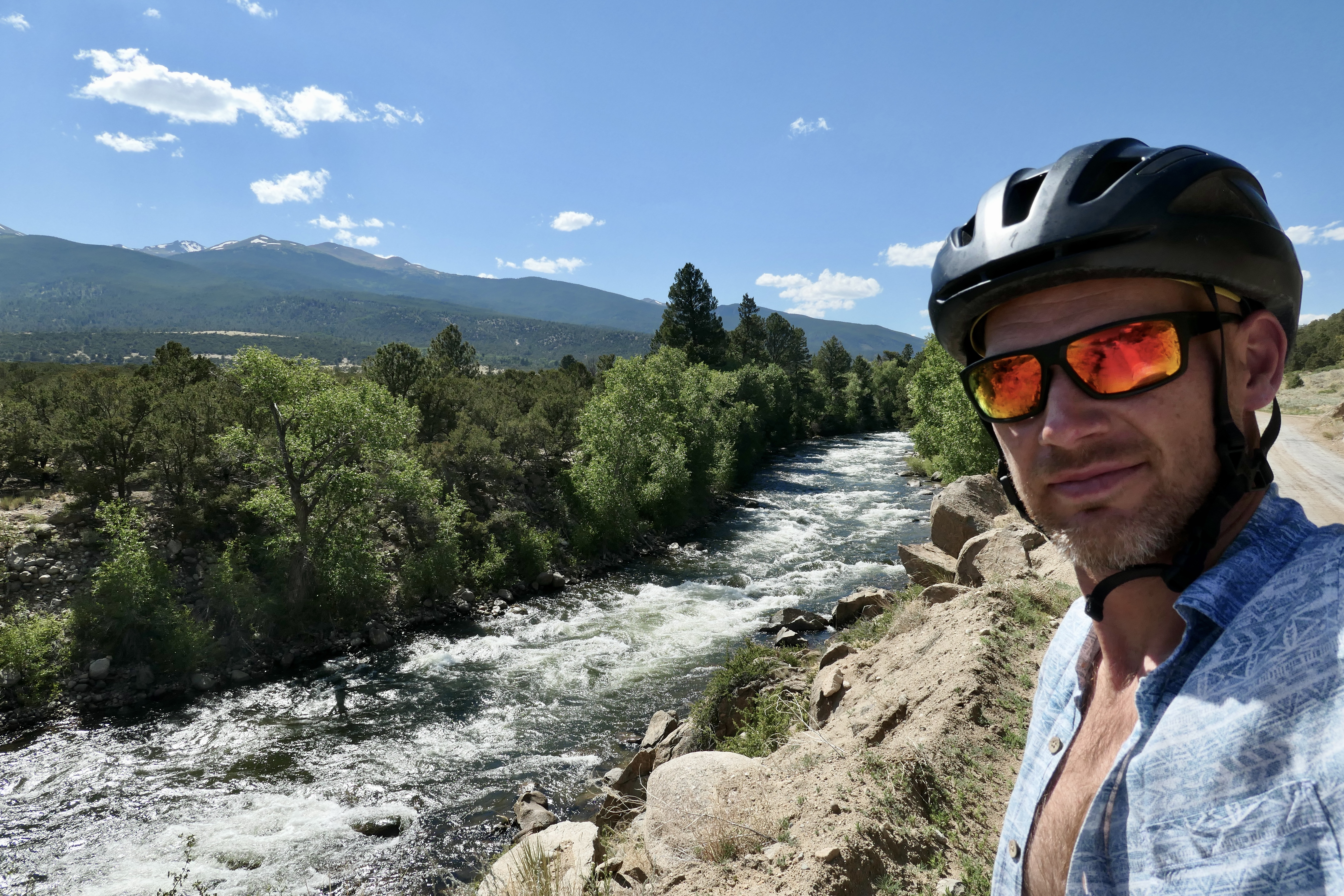 On day 3 I decided to take it very easy, I felt it a bit after the first two days so I didn’t want to rush anything and I just wanted to take my time. I spent a loooong time drinking coffee and eating Müesli, packed up and started riding down the mountain around 9:30. I rode south in the direction of Buena Vista and there was a lot of dirt roads running along the main road so it was a really beautiful ride and mostly downhill which I truly appreciated! I thought about biking to Huron Peak and climb it on the following day but decided against it and leave that for another day. I rode past Twin Lakes and onwards to Clear Creek Reservoir where I had lunch. I had brought tomatoes and cucumbers which are super heavy but definitely makes me happy when I’m eating it in the tortilla sandwiches that I make. It’s a fine balance – my food definitely weight a lot this trip but I also packed for 5 days. After lunch I rode down the main road for a few k’s and then connected with and old dirt road running on the east side of the Arkansas River. It was so cool to ride on that with beautiful views of 14’ers to the west, amazing rock formations to the east, and the river running right next to me. I went up to Turtle Rock campground which was still free. Riding up the hill I met this cool guy Brian who was living in his car for a few months and kayaking in the area. I was out of water and thankfully he had some extra. We talked for about half an hour before I rode up the last bit to the campsite. It was a beautiful site with views of Mount Princeton, Yale, and Havard. It ended up being another amazing full day riding almost 80k.